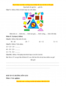 Câu 10 (1 điểm): Viết phép tính thích hợp và trả lời câu hỏi: