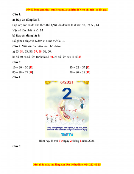 Hôm nay là thứ Tư ngày 2 tháng 6 năm 2021. Câu 5: