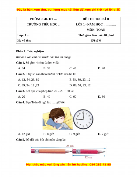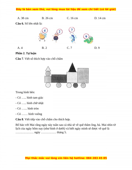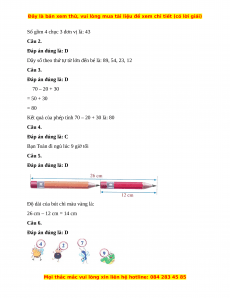 Độ dài của bút chì màu vàng là: 26 cm – 12 cm = 14 cm Câu 6. Đáp án đúng là: D