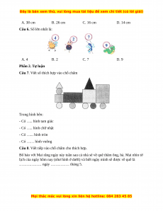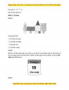 Câu 7. Viết số thích hợp vào chỗ chấm Trong hình bên: - Có ….. hình tam giác - Có ….. hình chữ nhật - Có …... hình tròn - Có …… hình vuông