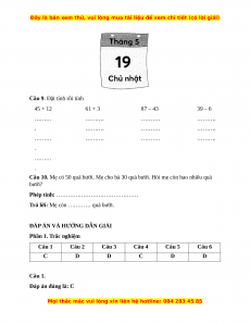 Kết quả của phép tính 70 – 20 + 30 là: 80 Câu 4. Đáp án đúng là: C