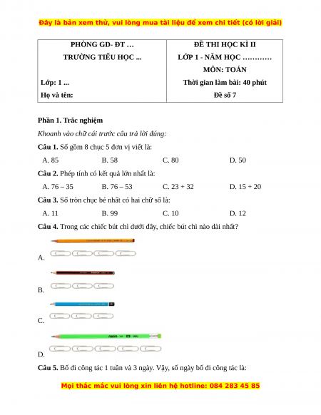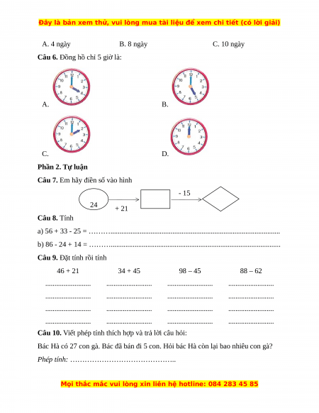 Đây là bản xem thử, vui lòng mua tài liệu để xem chi tiết (có lời giải)