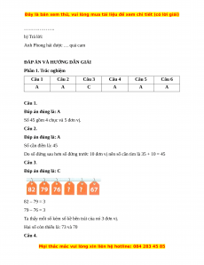 Do số đứng sau hơn số đứng trước 10 đơn vị nên số cần tìm là 35 + 10 = 45 Câu 3. Đáp án đúng là: C 82 – 79 = 3 79 – 76 = 3