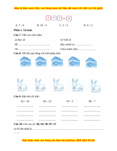 A. 7 – 4 B. 10 – 5 C. 3 + 3 D. 6 + 2 Phần 2. Tự luận