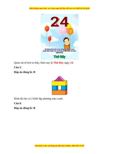 Câu 5: Hình dưới đây có bao nhiêu khối lập phương? A. 1 hình B. 2 hình C. 3 hình D. 4 hình