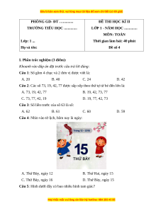 Câu 4: Nhìn vào tờ lịch, hôm nay là ngày: A. Thứ Bảy, ngày 12 B. Thứ Hai, ngày 15 C. Thứ Bảy, ngày 16 D. Thứ Bảy, ngày 15