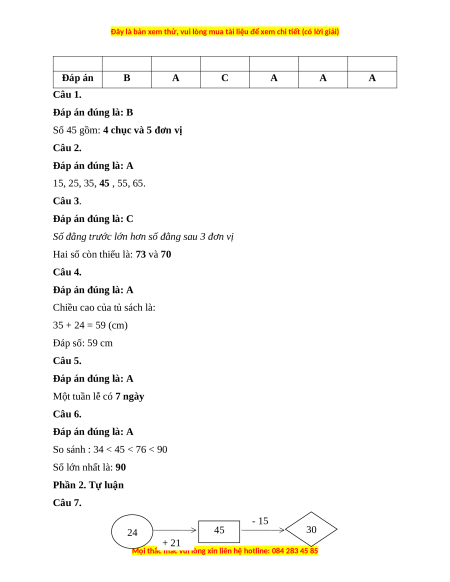 Số lớn nhất là: 90 Phần 2. Tự luận Câu 7. - 15 45 30 24 + 21