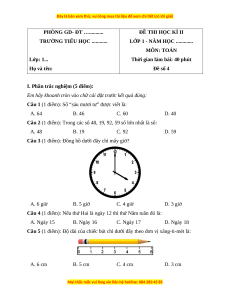Câu 4 (1 điểm): Nếu thứ Hai là ngày 12 thì thứ Năm tuần đó là: A. Ngày 15 B. Ngày 16 C. Ngày 17 D. Ngày 18