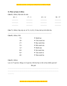 Câu 6 (1 điểm): Đặt tính rồi tính: 26 + 1 17 – 5 45 + 12 98 – 57 ................ ................ ................ ................ ................ ................ ................ ................ ................ ................ ................ ................