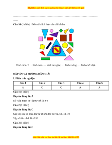 I. Phần trắc nghiệm Câu 1 Câu 2 Câu 3 Câu 4 Câu 5 A C C A A Câu 1 (1 điểm) Đáp án đúng là: A