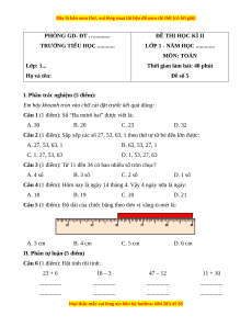 LỚP 1 - NĂM HỌC ............. MÔN: TOÁN Lớp: 1...