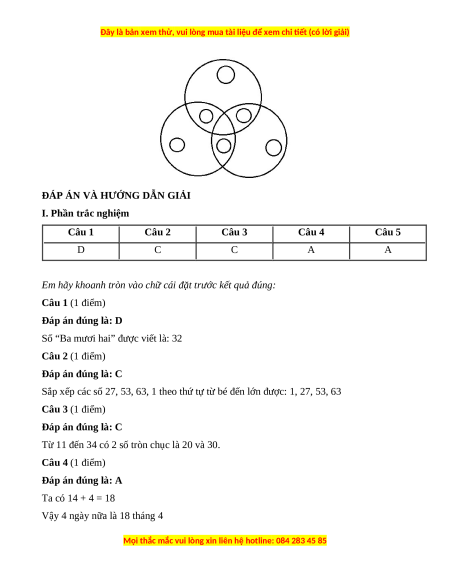 Em hãy khoanh tròn vào chữ cái đặt trước kết quả đúng: Câu 1 (1 điểm) Đáp án đúng là: D
