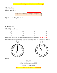 Câu 8: Em vẽ kim ngắn thể hiện giờ, kim dài thể hiện phút. Ta được kết quả như sau: 7 giờ 11 giờ Câu 9: Bài giải
