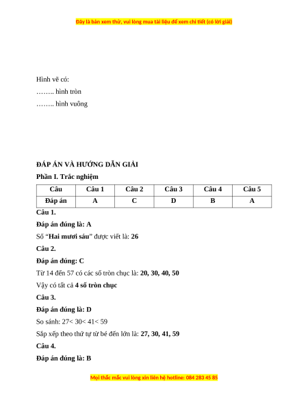 Số “Hai mươi sáu” được viết là: 26 Câu 2. Đáp án đúng: C