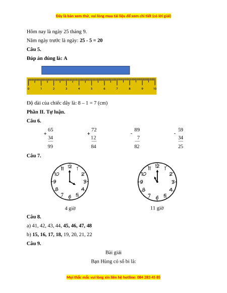 Câu 4. Hôm nay là ngày 25 tháng 9. Năm ngày trước là ngày: A. 30 B. 20 C. 15 D. 21 Câu 5.