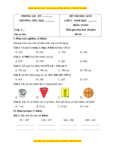 LỚP 2 - NĂM HỌC .............. MÔN: TOÁN Lớp: 2 ...