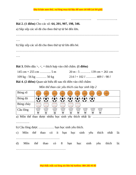 Bài 2. (1 điểm) Cho các số: 64, 201, 907, 198, 346.