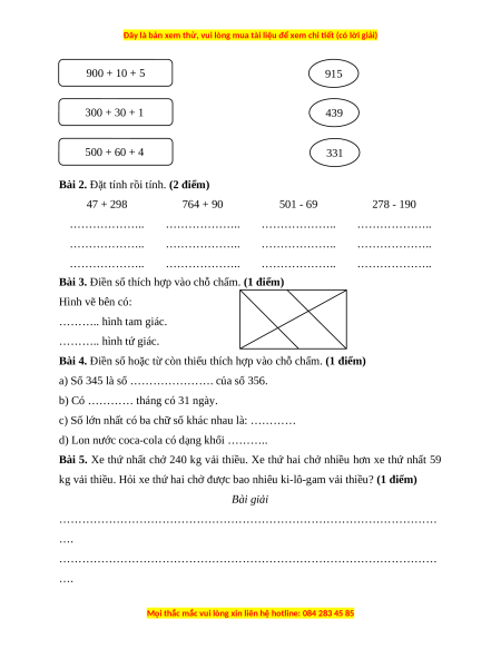 Bài 5. Xe thứ nhất chở 240 kg vải thiều. Xe thứ hai chở nhiều hơn xe thứ nhất 59