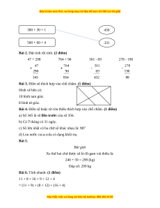 Bài 2. Đặt tính rồi tính. (2 điểm) 47 + 298 764 + 90 501 - 69 278 - 190 ……………….. ……………….. ……………….. ……………….. ……………….. ……………….. ……………….. ……………….. ……………….. ……………….. ……………….. ………………..