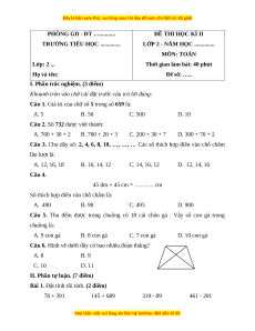 LỚP 2 - NĂM HỌC .............. MÔN: TOÁN Lớp: 2 ...