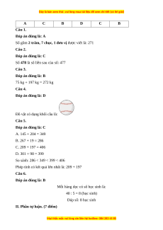 A C B D C B Câu 1. Đáp án đúng là: A