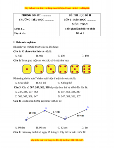 Độ dài đường gấp khúc ABCD là: 25 + 37 + 38 = 100 (cm) Đổi 100 cm = 1 m Câu 5: Đáp án đúng là: C
