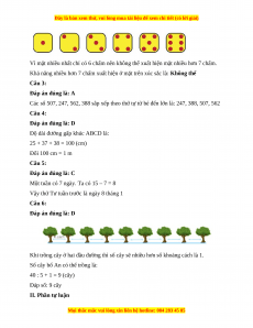 Số cây bố An có thể trồng là: 40 : 5 + 1 = 9 (cây) Đáp số: 9 cây II. Phần tự luận