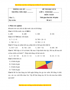 Câu 2: Số 728 được viết thành: A. 7 + 2 + 8 B. 700 + 20 + 8 C. 700 + 8 + 2 D. 700 + 2 + 8