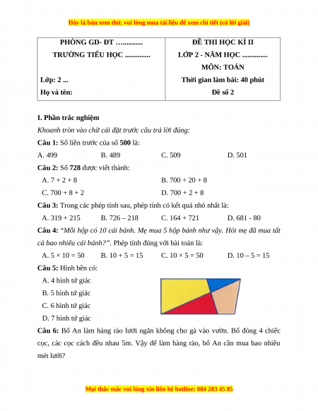 Đây là bản xem thử, vui lòng mua tài liệu để xem chi tiết (có lời giải)