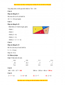 Vậy phép tính có kết quả nhỏ nhất là: 726 – 218 Câu 4: Đáp án đúng là: C