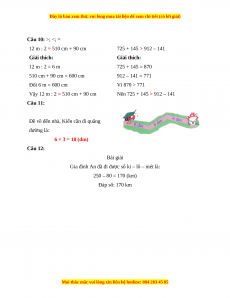 580 m – 238 m + 48 m = 390 m Câu 9: 2 × 7 = 14 5 × 8 = 40 35 : 5 = 7 16 : 2 = 8
