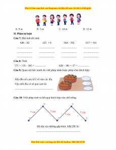 Câu 7: Đặt tính rồi tính: Câu 8: 571 + 135 – 305 = 401 628 – 381 + 37 = 284 Câu 9: