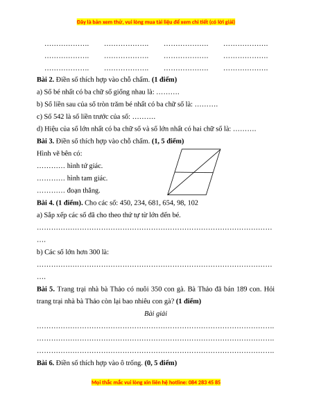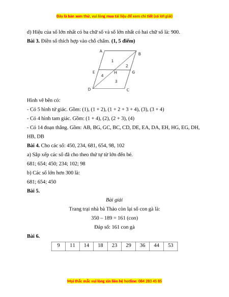 Bài 4. (1 điểm). Cho các số: 450, 234, 681, 654, 98, 102