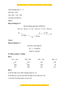 Câu 5. Độ dài đường gấp khúc MNPQ là: M . P . 37 cm . . Q 247 cm 98 cm N A. 386 cm B. 392 cm C. 372 cm D. 382 cm