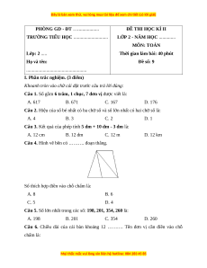 LỚP 2 - NĂM HỌC .............. MÔN: TOÁN Lớp: 2 .....