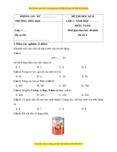 LỚP 2 - NĂM HỌC .............. MÔN: TOÁN Lớp: 2 .....