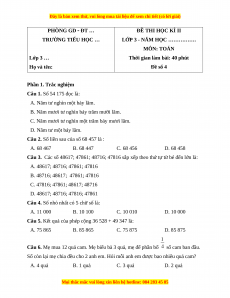 LỚP 3 - NĂM HỌC ……………. MÔN: TOÁN Lớp 3 …