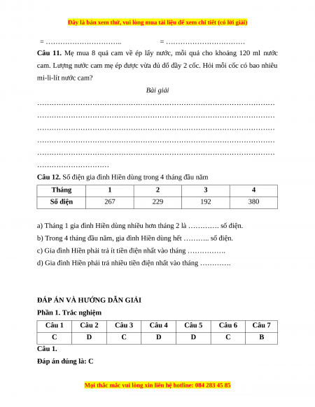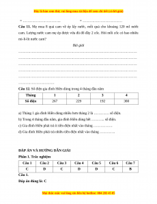 Câu 11. Mẹ mua 8 quả cam về ép lấy nước, mỗi quả cho khoảng 120 ml nước