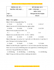 Đề thi cuối kì 2 Toán lớp 3 Cánh diều (Đề 6)