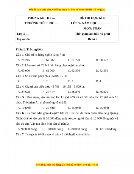 Đây là bản xem thử, vui lòng mua tài liệu để xem chi tiết (có lời giải)