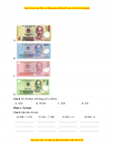 Câu 7. Trong các tờ tiền sau tờ tiền có mệnh giá nhỏ nhất là: