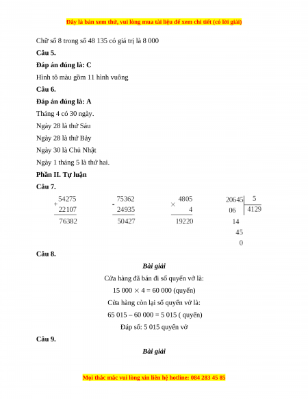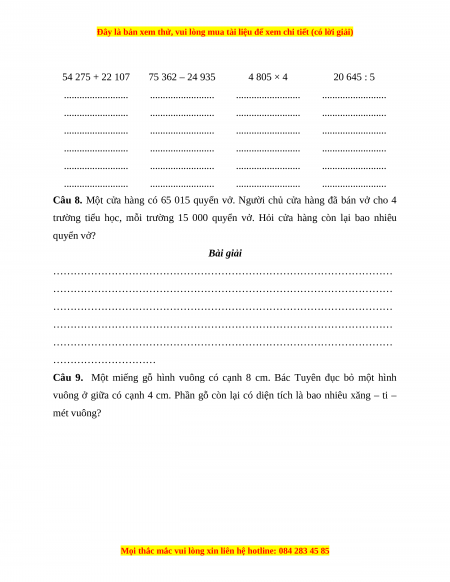 Câu 8. Một cửa hàng có 65 015 quyển vở. Người chủ cửa hàng đã bán vở cho 4