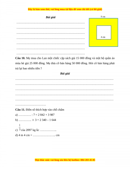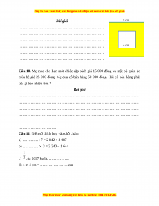 Câu 10. Mẹ mua cho Lan một chiếc cặp sách giá 15 000 đồng và một bộ quần áo