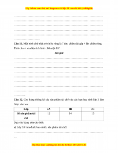 Câu 11. Một hình chữ nhật có chiều rộng là 7 dm, chiều dài gấp 4 lần chiều rộng.