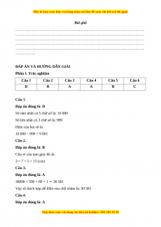 Vậy số thích hợp để điền vào chỗ chấm là: 30 581 Câu 4. Đáp án đúng là: A