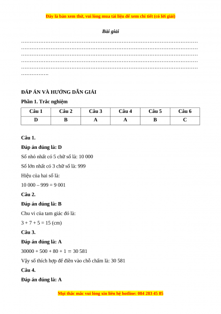 Đây là bản xem thử, vui lòng mua tài liệu để xem chi tiết (có lời giải)
