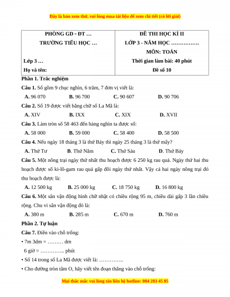 Đề thi cuối kì 2 Toán lớp 3 Kết nối tri thức - Đề 10