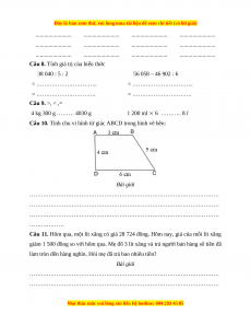 Câu 7. Đặt tính rồi tính 4 722 + 5 369 14 751 – 10 162 27 108 8 57 708 : 3 ......................... ......................... ......................... ......................... ......................... ......................... ......................... ......................... ......................... ......................... ......................... .........................