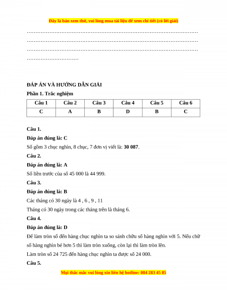 Số liền trước của số 45 000 là 44 999. Câu 3. Đáp án đúng là: B