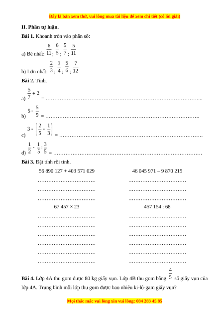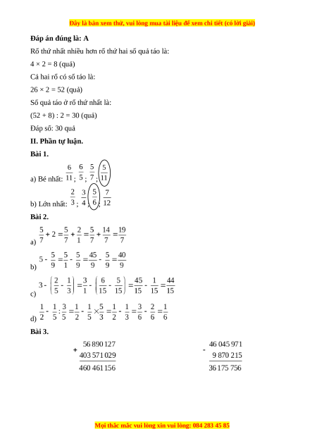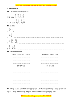 Bài 1. Khoanh tròn vào phân số: a) Bé nhất: ; ; ; b) Lớn nhất: ; ; ; Bài 2. Tính. a)
